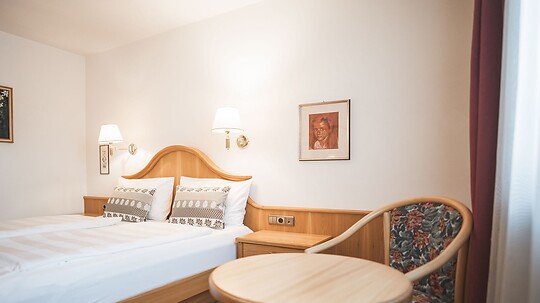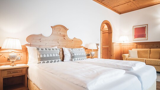 Stylish double room in timeless elegance with modern comfort and panoramic views. Parquet floors and a tasteful, traditional decor create an atmosphere of comfort. The...