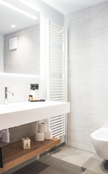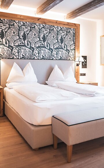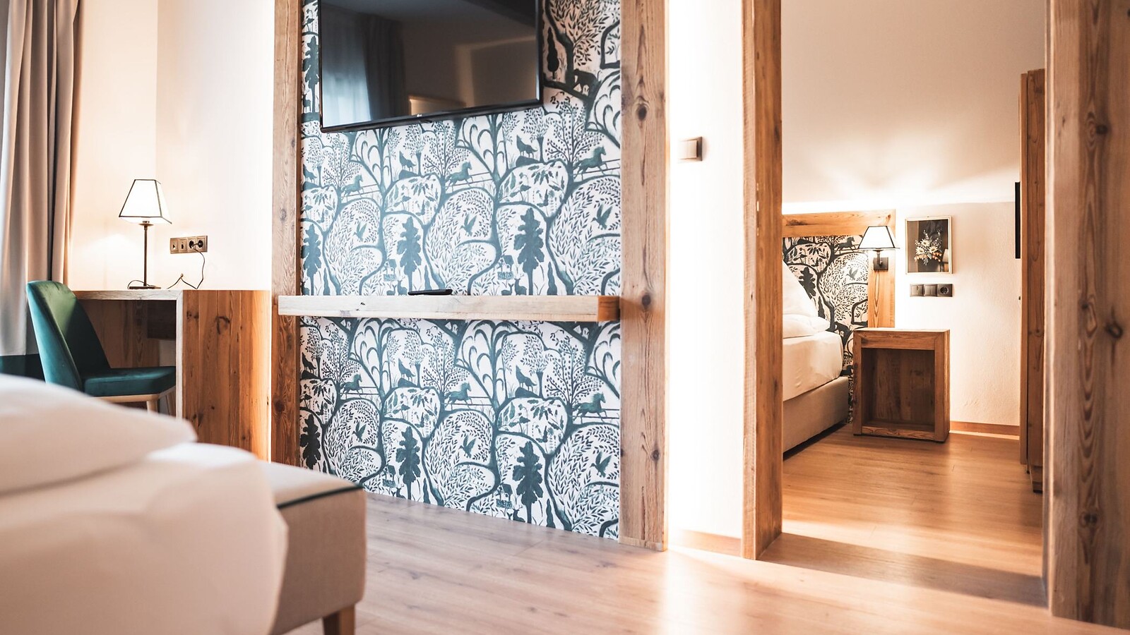 Enjoy our newly renovated rooms with elegant wooden floors, high-quality furnishings, and modern bathrooms! The new Suite Rosa features, in the main area, a comfortable double bed, a bathroom with shower/WC/bidet, and a balcony with a beautiful view of Mount Pfannhorn. Separated from the double room by a door and with its own private entrance, there is an additional smaller room with its own bathroom. Hairdryer, safe, telephone, radio, TV, and Wi-Fi.