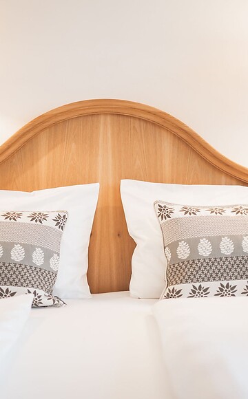 Elegante camera matrimoniale in uno stile senza tempo, con comfort moderni e vista panoramica. I pavimenti in parquet e l'arredamento tradizionale e raffinato creano un'atmosfera di comfort. Il bagno è dotato di doccia/WC, bidet e asciugacapelli. Cassaforte, telefono, TV, radio e Wi-Fi gratuito completano i servizi. Punto forte: L'orientamento sud della camera con un balcone privato offre una vista mozzafiato sul maestoso Sarlkofel.